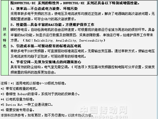 集“高”、“精”、“尖”技術(shù)為一體的DHVECTOL-HT系列產(chǎn)品為日立原裝進(jìn)口產(chǎn)品。最高啟動(dòng)力矩可達(dá)額定轉(zhuǎn)矩的250%。適用于5250KW以下的牽引拖動(dòng)、磨機(jī)類傳動(dòng)以及攪拌類等大力矩啟動(dòng)電機(jī),滿足了極高的控制工藝要求。該系列產(chǎn)品在日本獲得日本電氣協(xié)會(huì)會(huì)長獎(jiǎng)。